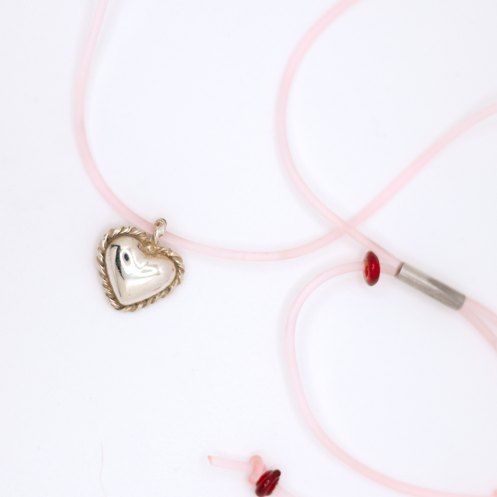 powder coated brass pendant with sterling silver on silk cord. multiple colorways.