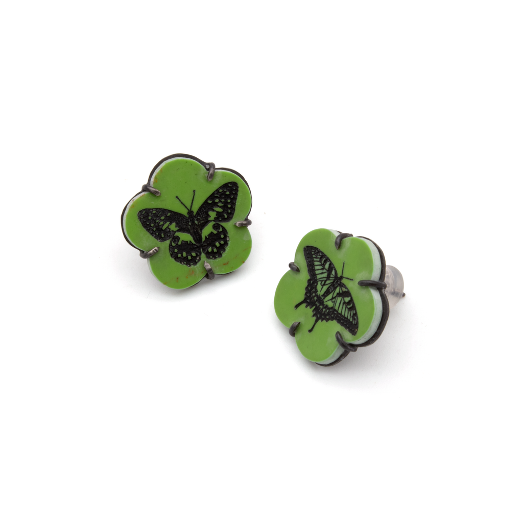 Etched Reconstituted Malachite Earrings