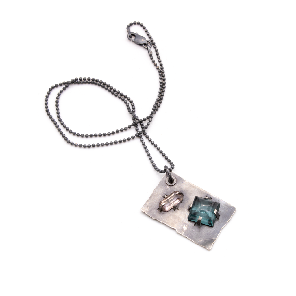 Sterling silver with cut mismatch gems and diamond cut ball chain by Spee Parker