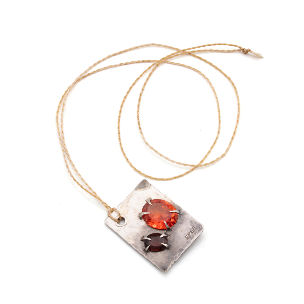 Sterling silver with cut mismatch gems and hand dyed silk thread by Spee Parker